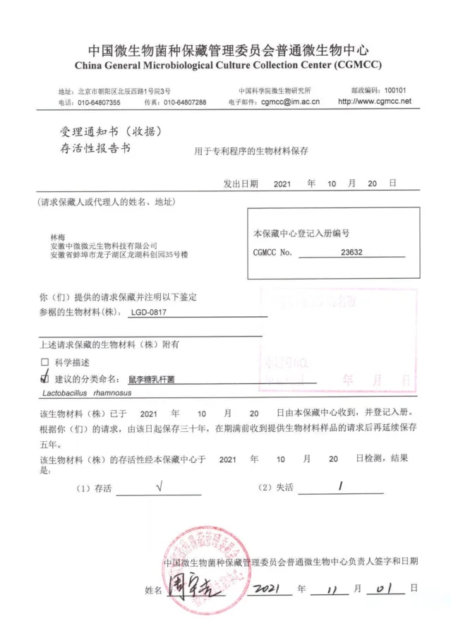 其中,21种益生菌菌株获得中国微生物菌种保藏管理委员会普通微生物中心(CGMCC)的收录,凸显了中微生物在此领域的研究实力与科学贡献。这些菌株不仅具备高科学价值,还拥有明确的应用前景,预计将在未来的医药、食品和保健品等行业中发挥关键作用。